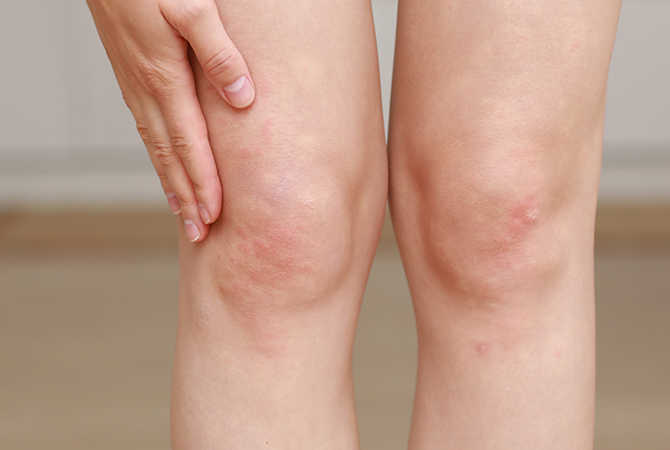 표면이 오돌도돌한 구진(1cm 미만 크기로 피부가 솟아오른 것)으로 나타난다.